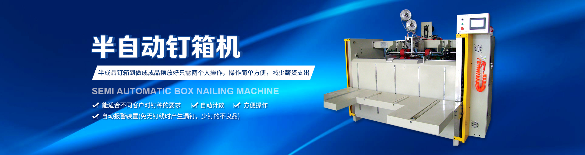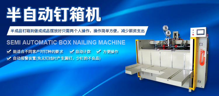 半自動(dòng)釘箱機(jī)設(shè)備特點(diǎn)釘箱機(jī)在現(xiàn)在的機(jī)械行業(yè)內(nèi)使用比較的廣泛,因?yàn)楝F(xiàn)在紙箱包裝機(jī)械的發(fā)展迅速,企業(yè)關(guān)于釘箱機(jī)的要求也越來越高,而組織制造業(yè)想要使設(shè)備更具競(jìng)爭(zhēng)力,需要關(guān)于半自動(dòng)釘箱機(jī)的...查看詳情+